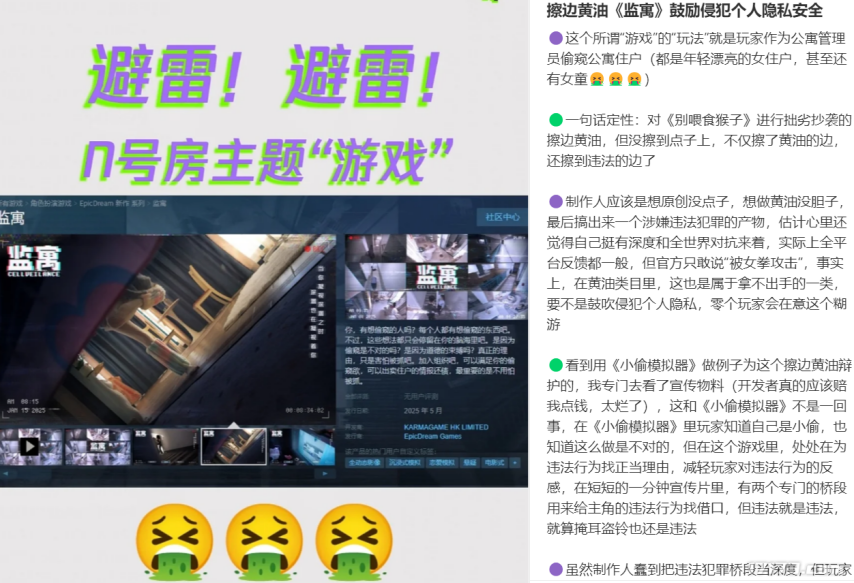 正如大家所见,在最近有一款名字叫《监寓》的国产游戏,因为其尺度超大“偷窥”的玩法登上了各大平台的预约榜榜首。