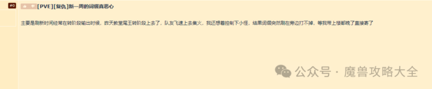 本周,很多大秘境玩家都注意到了一个问题。即”转阶段时,虚缚词缀怪会经常刷新,若时间轴不对会玩家无法处理词缀怪导致灭团”,目前典型的例子有“伤逝剧场玩家决斗时,二楼台子上虚缚词缀会和旗帜一起刷新;驭雷栖巢尾王消柱子时刷新虚缚词缀怪”等等。