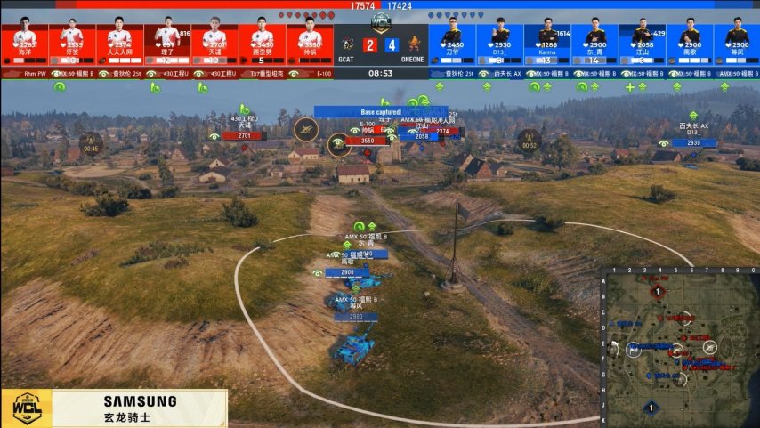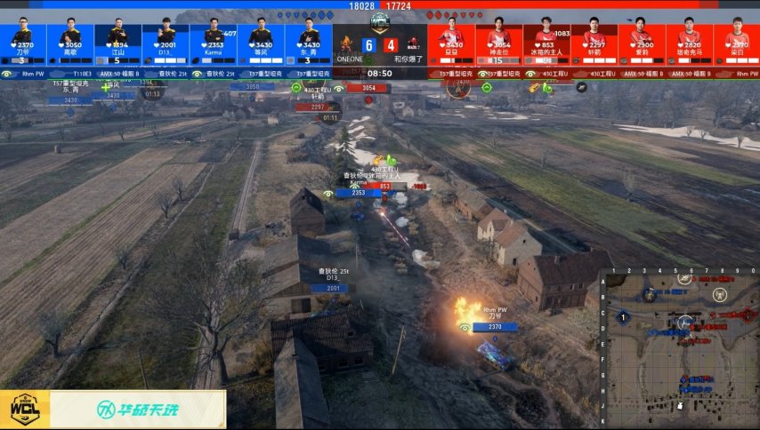 第七局开场双方均先拿到雷达资源进行全员点亮,了解到对方所有车型和站位。ONEONE的三台AMX50福熙B直接进入旗圈进行三占,GCAT想拿炮击点资源来打断占家,但是被ONEONE提前架炮攻击,GCAT不仅无法拿到炮击资源而且已经来不及踩圈阻断,ONEONE通过占家赢下本局。
