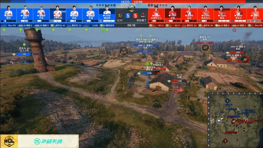 第九局开始和你爆了的BZ-75直奔中心炮击点进行争夺,但GCAT三台AMX 50福熙B同步前压对其形成包围和集火,BZ-75被击毁。GCAT拿到一血优势后,利用地形优势开始三占旗圈给压力,和你爆了面临占家倒计时,想拿下炮击点资源却被GCAT打断,前往阻断的坦克也来不及踩圈,GCAT通过占家获得胜利。