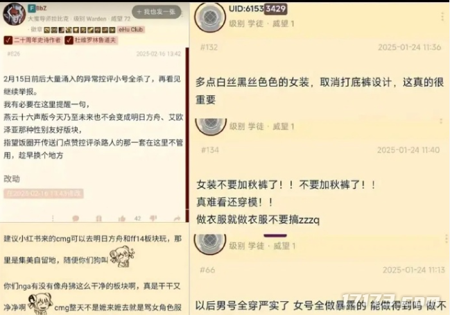 负责NGA燕云版块的版主发表了一堆系列天言论,包括“燕云NGA这个版块不是性别友好的”,“鼓励游戏角色露肉”,“不需要女玩家给角色加棉衣”等等。