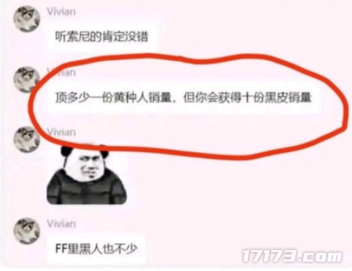 与《阴阳师》超鬼王事件相比,《失落之魂》前策划 Vivian在玩家群的发言就更“灾难”了。其曾在游戏制作时,公然在玩家群炫耀索尼高管来工作室指导要求添加ZZZQ元素,并认为:“少一份黄种人销量,多十份黑皮销量”。