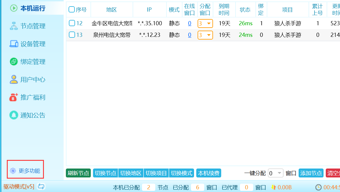 点击客户端 左下方 更多功能,可以设置一些特殊需求的功能。