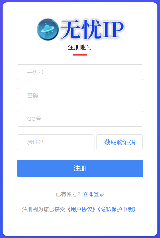 依次输入 :手机号(用作以后登录的账号)、密码、QQ号(方便联系客服售后)