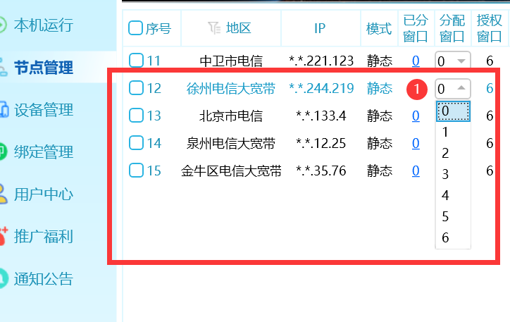 如果窗口数分配错了,可以在节点 分配窗口 栏修改窗口数。