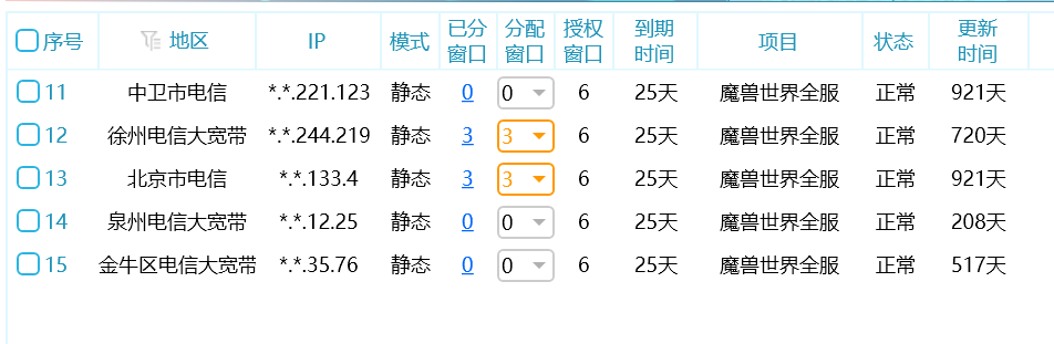单独分配:一次分配一个IP,这样可以灵活设置每个IP的窗口数。