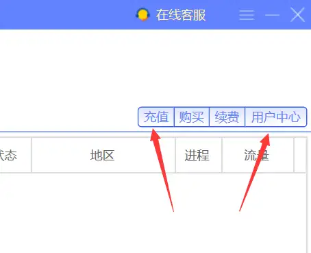 登录到网页 用户中心,或者在已经登录的无虑包机客户端上点击用户中心或者 充值